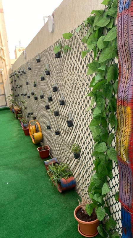 وقال المعلم بندر صالح حكمي لـ«عكاظ»: «بدأت الفكرة أثناء فترة الحجر المنزلي بسبب جائحة فايروس كورونا، حيث عمدت إلى تعليم أبنائي بعض المهارات الفنية نظرا لكوني معلما لمادة التربية الفنية في إحدى المدارس الابتدائية، والاستفادة من المخلفات البيئية، مشيرا إلى أنه وجد تشجيعا كبيرا من كافة أفراد أسرته، ما جعله يحول فناء منزله إلى أحواض زراعية ذات أشكال فنية متعددة».