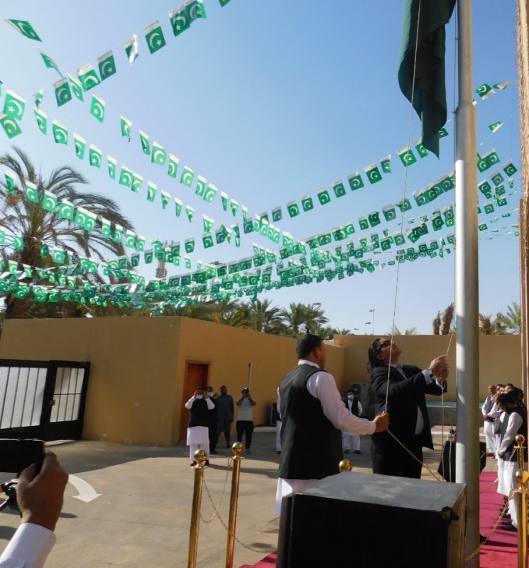 أقيم صباح اليوم حفل رفع العلم في القنصلية العامة الباكستانية بجدة، وسفارة باكستان بالرياض، بمناسبة يوم الوطني الـ74 للجمهورية باكستان الإسلامية. وحضرت الحفل شريحة مختلفة من الجالية الباكستانية االمقيمة في جدة والرياض والمدن المجاورة لها.