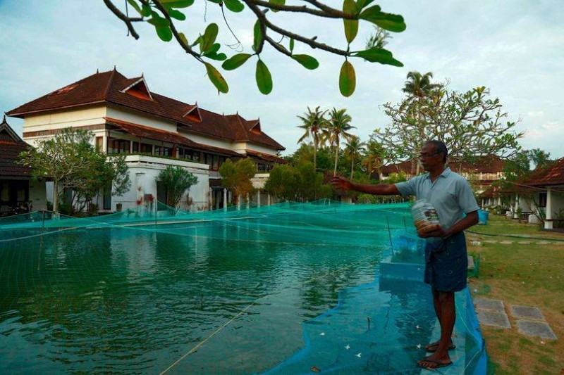 بعد الخسائر الاقتصادية الفادحة التي خلّفتها جائحة كورونا حول العالم، حوّل فندق (5 ستارز) في جنوب الهند حوض السباحة الخاص بالنزلاء إلى مزرعة للأسماك، لتعويض بعض الخسائر، ووفق موقع «إندبندنت» البريطاني، يقول مدير الفندق بمنتجع أفيدا في ولاية كيرالا: «قبل أشهر كان المسبح البالغ 500 قدم مليئاً بالسياح الأوروبيين، غير أنه أصبح مكتظا بالآلاف من أسماك اللؤلؤ بعدما أمرت السلطات بإغلاق الفندق منذ مارس الماضي». وأضاف: «لن تغطي المزرعة المؤقتة الخسائر الناجمة عن الوباء لكنها ستساعد في تغطية الفواتير الأساسية لحين مباشرة العمل وعودة السياح». واستدرك: «هو مشروع ناجح وسننقله لاحقاً إلى موقع آخر».