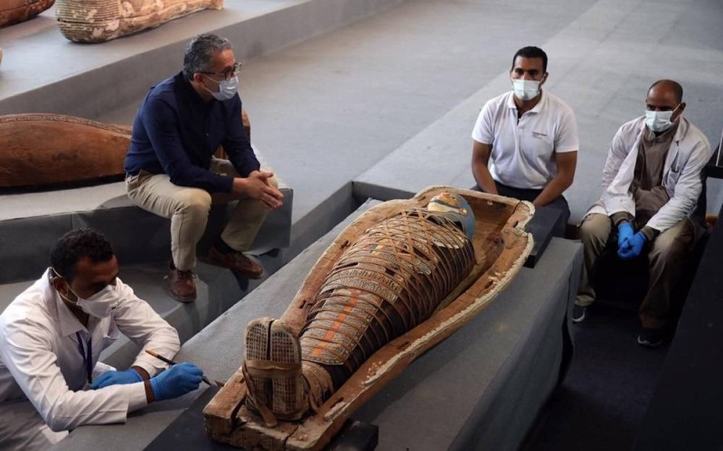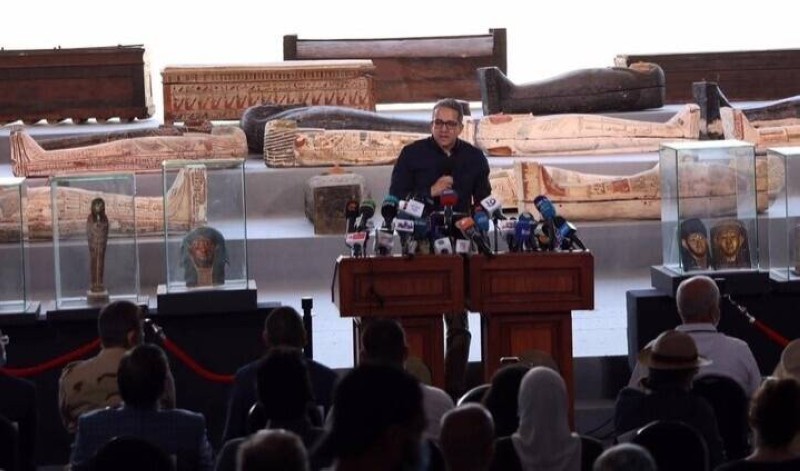 وأعلنت وزارة السياحة والآثار المصرية، وسط تغطية إعلامية موسعة بجبانة سقارة، أمس (السبت)، اكتشاف عدد آخر من التوابيت داخل 3 آبار للدفن يراوح عمقها ما بين 10 أمتار إلى 12 مترا تحت سطح الأرض، إضافة إلى عدد كبير من اللقى الأثرية.