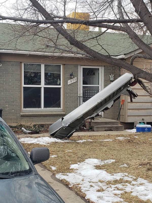 ونشرت شرطة برومفيلد بولاية كولورادو صورا لقطع تطايرت من الطائرة البوينغ 777-200 لكن لم ترد تقارير فورية عن أي إصابات على الأرض.