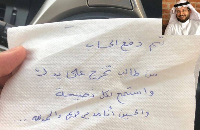 رسالة سعودي لأستاذه: وصل الحساب من متخرج على يديك
