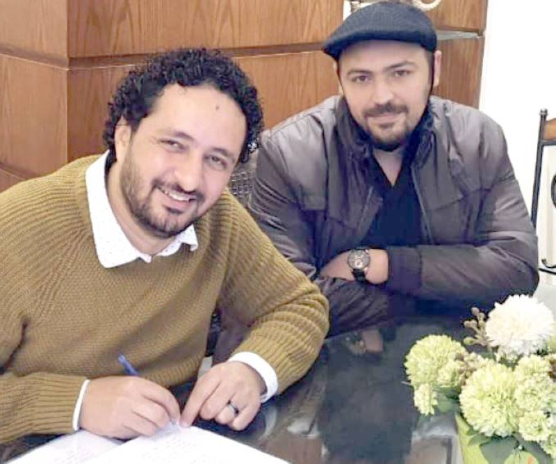 أحمد عصام وأمين جمال أثناء توقيع العقد.