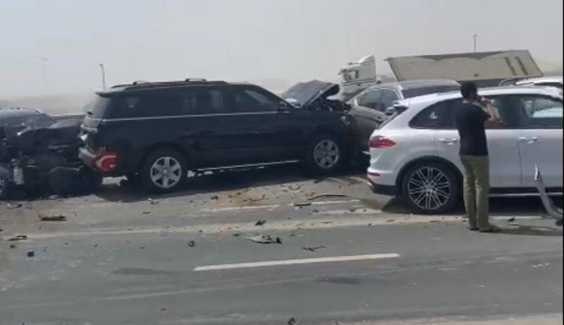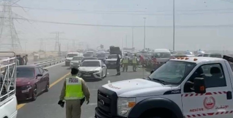 أعلنت شرطة دبي أن تدني الرؤية الأفقية على شارع الإمارات بعد جسر القدرة بالاتجاه إلى الشارقة وعدم التزام السائقين بترك مسافة أمان كافية أسفرا عن وقوع حادث تصادم بين 34 مركبة، ما تسبب بتوقف الحركة المرورية على الطريق.
