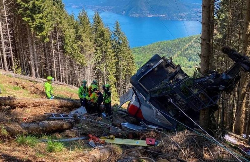 ووقع الحادث في تلفريك يربط بين بلدة ستريزا الواقعة على ضفاف بحيرة لاغو ماجوري، وجبل مونتيرون الذي يبلغ ارتفاعه نحو 1500 متر.