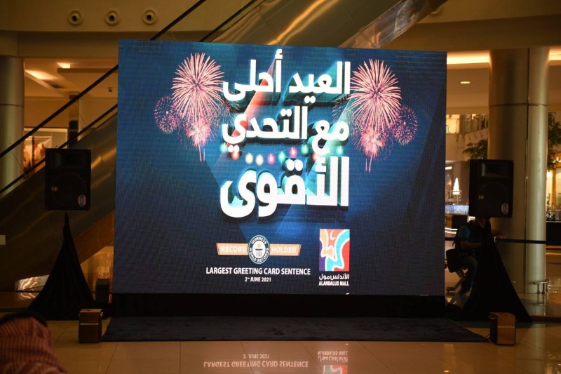 سجل مركز «الأندلس مول» أكبر عدد من بطاقات التهنئة لأكبر جملة مشكلة من بطاقات المعايدة وذلك بعد تشكيلها بمجموع 9610 بطاقة، ليحصل بذلك على شهادة موسوعة «غينيس» للأرقام القياسية، بعد تجاوزه الرقم السابق المسجل في الموسوعة البالغ 9077 بطاقة.