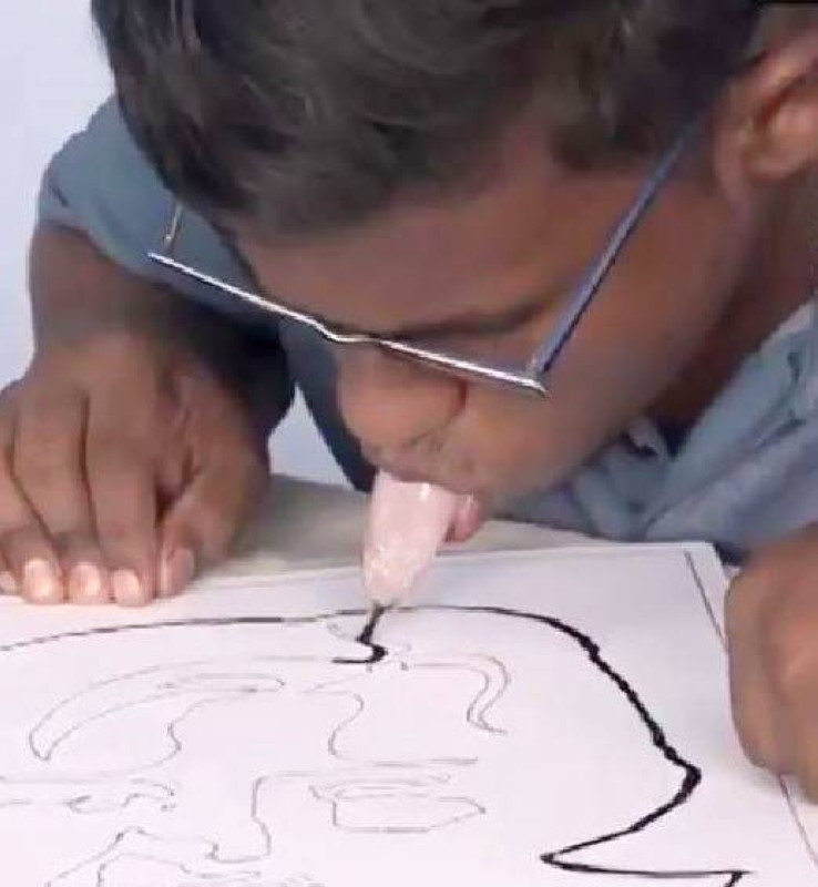 برافين كاليراجان يرسم بلسانه. (متداولة)