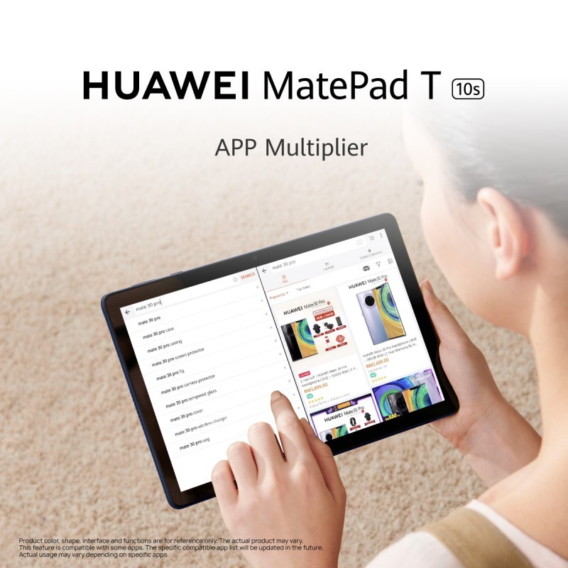 أما «HUAWEI MatePad T10s» الجديد فهو جهاز لوحي محمول وقوي مقاس 10.1 بوصة، يوفر أفضل إمكانات الوسائط المتعددة في فئته بفضل نسبة الشاشة التي تبلغ 80% من حجم الهيكل الكلي للاستمتاع بتجربة مشاهدة غنية. وسيتمكن المستخدمون بفضل تقنية «HUAWEI ClariVu» من الاستمتاع بمرئيات واقعية في تصميم متماثل ومكبرات صوت بقدرة عالية وبرنامجيّ «HUAWEI Histen» و«Harmon Kardon». وتم تحسين التصميم بشكل أكبر عبر الحواف المتناسقة وسمك 7.85 مم فقط ووزن 450غ، مما يجعله الجهاز المثالي للاستمتاع بالألعاب أو الترفيه أثناء رحلة طويلة.
