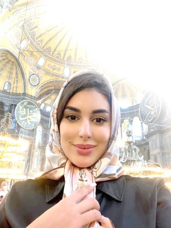 ياسمين صبري في داخل الحرم أثناء زيارتها. (عكاظ)
