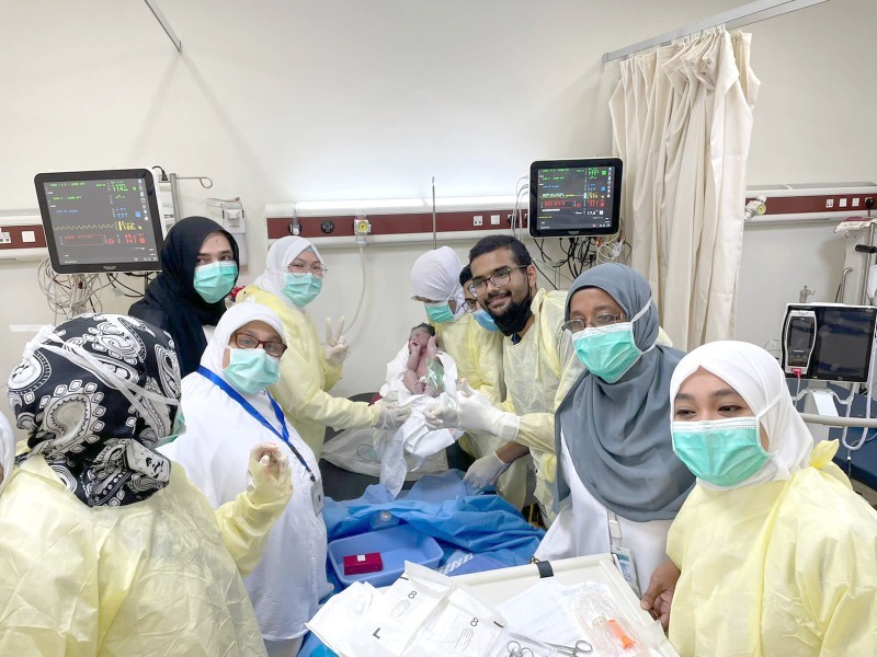 الفريق الطبي يحمل المولودة.