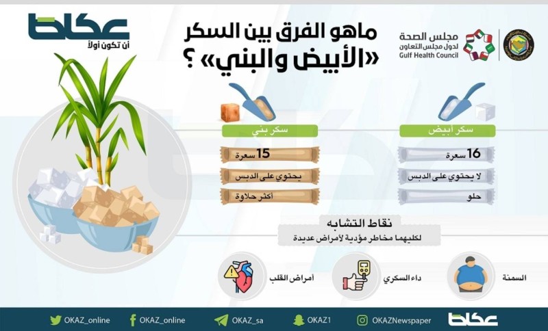 كشف مجلس الصحة الخليجي اليوم (السبت) عبر حساباته الرسمية في وسائل التواصل الاجتماعي، حقيقة الفرق بين السكر البني والسكر الأبيض وأيهما الصحي والأفضل في الاستخدام عند الحاجة.