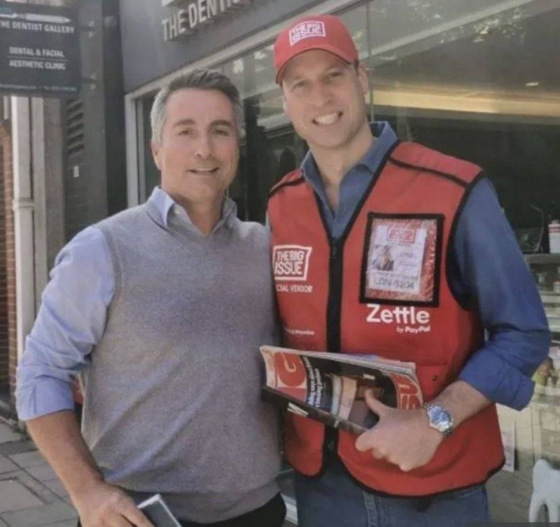 شوهد الأمير وليام، الثاني في ترتيب ولاية العرش البريطاني، في شوارع لندن وهو يبيع نسخا من مجلة «بيغ إشيو» التي عادة ما يبيعها المشردون.