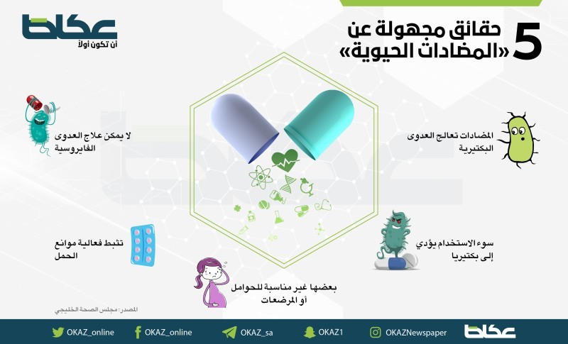 قال مجلس الصحة الخليجي إن للمضادات الحيوية خمس حقائق قد يجهلها الكثير من مستخدميها، وإن المضادات تختلف بحسب نوعها وطريقة استخدامها.
