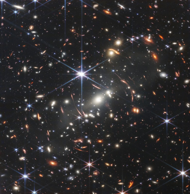 كشفت وكالة الفضاء الأميركية (ناسا) أمام العالم أول صورة من تلسكوب جيمس ويب، في لقطة نادرة تظهر المجرات التي تشكلت بعد فترة وجيزة من الانفجار الكبير قبل أكثر من 13 مليار سنة. وقال الرئيس الأمريكي جو بايدن في حفلة أقيمت بالبيت الأبيض ونشرت خلالها باكورة حصاد التلسكوب الفضائي، إنّ هذه الصورة العلمية والملوّنة التي التقطت بالأشعة تحت الحمراء هي الأولى من نوعها وتمثّل يوماً «تاريخياً». ونشرت هذه الصورة بعد 6 أشهر من إطلاق جيمس ويب، أقوى تلسكوب فضائي على الإطلاق.