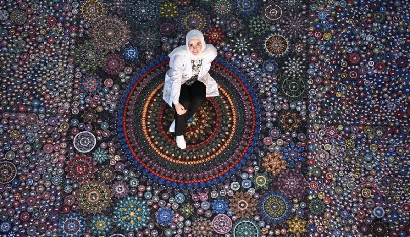 وتمكنت الفنانة الشابة من رسم 4096 دائرة ماندالا بمختلف الأقطار والألوان والزخارف المتنوعة، أكبرها بقطر مترين وأصغرها بقطر 2 سم، وعلى 8 ألواح من خشب الـ MDF لتجمعها معا بمساحة 25 مترا مربعا تقريبا.
