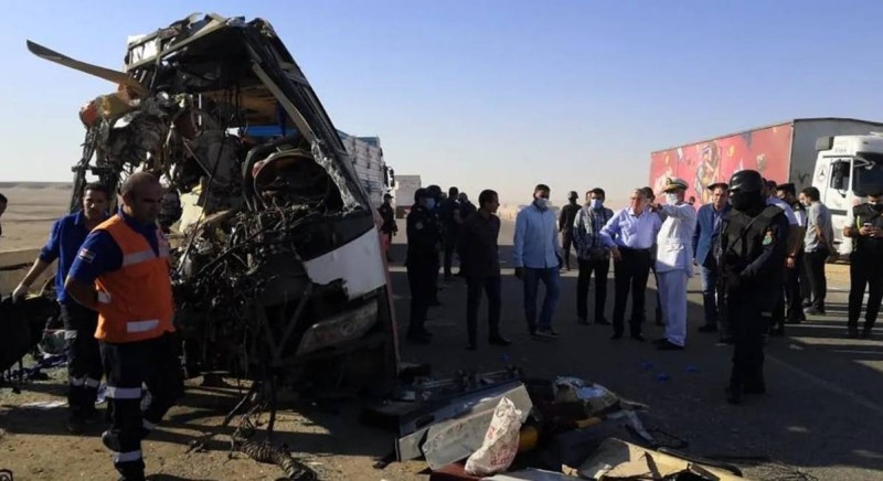 وتشير البيانات الأولية للحادثة إلى أن سيارة النقل كانت متوقفة على جانب الطريق لتغيير أحد الإطارات، فاصطدمت بها من الخلف الحافلة القادمة من محافظة سوهاج والمتجهة إلى القاهرة.