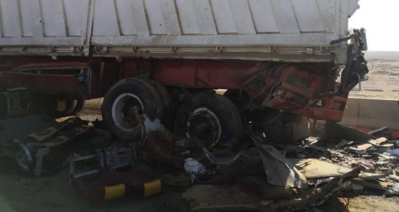 ووقعت حادثة تصادم الحافلة بسيارة النقل على الطريق الصحراوي الشرقي أمام الكيلو 93 بمركز ملوي.