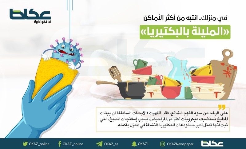 كما تجعل الطبيعة المسامية لإسفنجات المطبخ وقدرتها على امتصاص السوائل، مساحة تخزين مثالية للكائنات الحية الدقيقة.