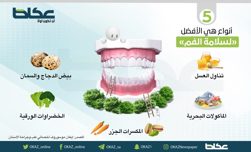 كشف الدكتور إيفان موسوروف أخصائي طب وجراحة الأسنان، أن صحة الأسنان تتطلب أطعمة محددة تزيد من قوتها ونضارتها، وأشار الطبيب الروسي بحسب البيان إلى أن الحالة الصحية للأسنان تعتمد على النظام الغذائي للإنسان. وأوضح أنه من أجل الحفاظ على حالة صحية جيدة لتجويف الفم، يجب تناول العسل في الوجبات، وحدد خمسة أنواع هي الأفضل لسلامة الفم والأسنان: