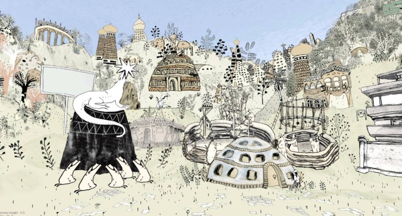 فيلم التحريك التفاعلي بعنوان «عبر الساحة الرئيسيّة» من إخراج بيدرو هاريس، الذي فاز بجائزة لجنة التحكيم الخاصة في مهرجان فينيسيا السينمائي الدولي، يأخذ الفيلم المشاهد في رحلة عبر الزمان تكشف ازدهار الحضارات واندثارها من منظور أحد الميادين الرئيسية في البلدة.