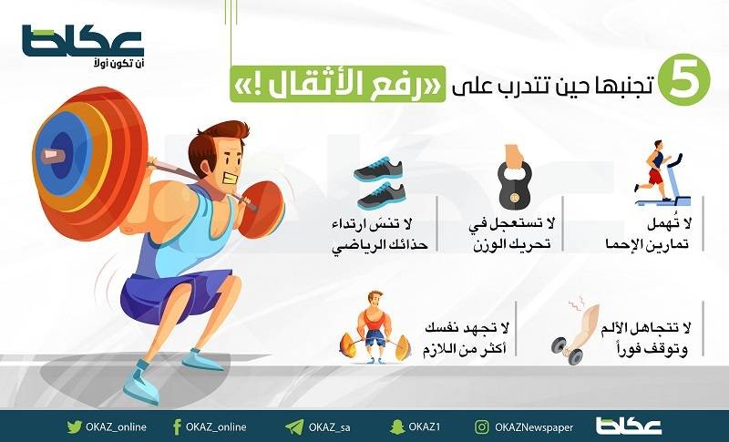 ستساعدك تمارين رفع الأثقال في حرق الدهون إذا قمت بها بصورة صحيحة، كما ستزيد من قوتك وكتلتك العضلية وستحسن من كثافة عظامك. ولكن إذا قمت بها بصورة خاطئة، فلن تحصل على النتائج نفسها، بل قد تتعرض للإصابة، ووفقاً لـ«الشرق بلومبيرغ» هناك 5 أمور يجب تجنبها حين تتدرب برفع الأثقال: