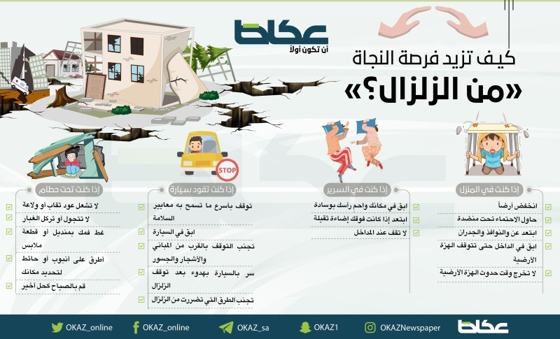 كيف تزيد فرصة النجاة من الزلزال.. إذا كنت في المنزل أو الخارج أو السيارة أو تحت الأنقاض ؟!