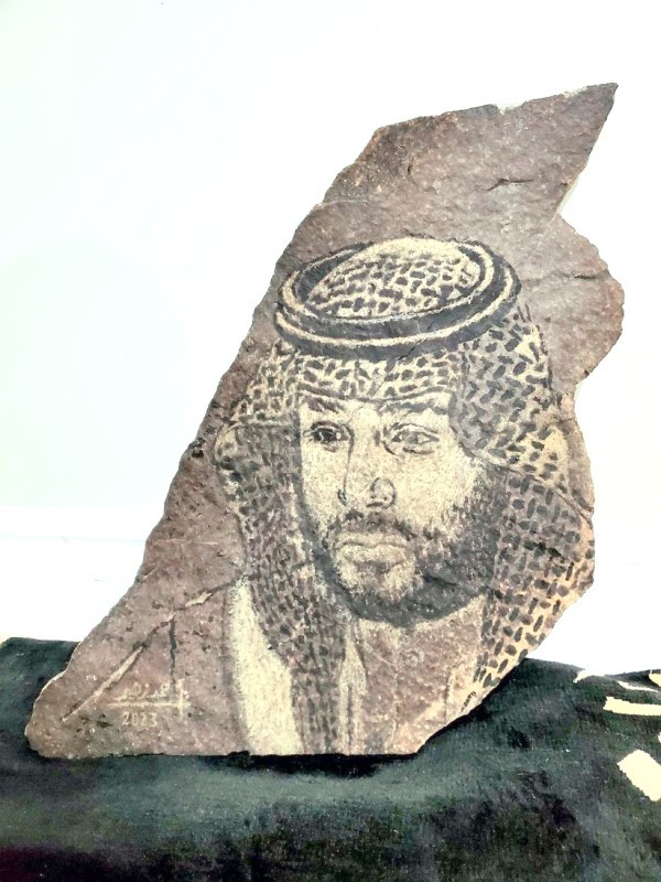 احتفاء بالتأسيس.. زهير ينحت صورة ولي العهد على حجر نادر