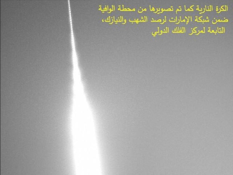 ويأتي ذلك بعدما تمكنت شبكة الإمارات لرصد الشهب والنيازك التابعة لمركز الفلك الدولي، من التقاط شهاب لامع (كرة نارية) ظهر في سماء الإمارات الليلة قبل الماضية الساعة 2:23، وأكد كثيرون مشاهدته، فيما وصف المركز هذه الظاهرة بأنها طبيعية.