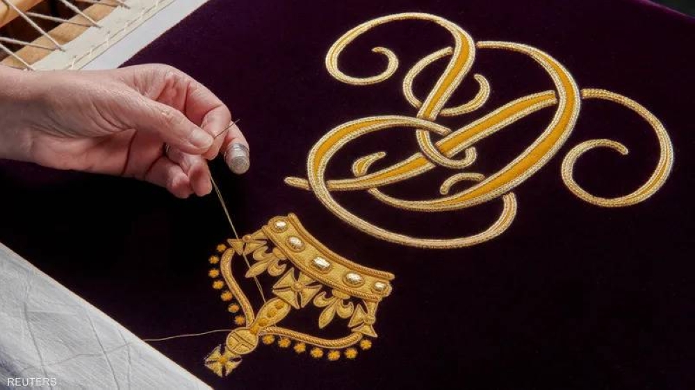 وأظهرت الصور التي نشرها القصر أعضاء من المدرسة الملكية للتطريز وهم يقومون بأعمال على ثوب مخملي قرمزي بطول عدة أقدام مع حواف من الدانتيل الذهبي من المقرر أن يرتديه تشارلز. وأظهرت صورة أخرى تطريز ثوب لها برمز خاص بها.