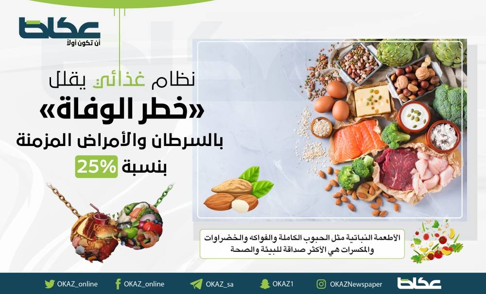 كشفت مجموعة من الباحثين نظاما غذائيا قد يساعد في تقليل خطر وفاة الأشخاص بسبب السرطان وأمراض القلب والأمراض المزمنة الأخرى بنسبة 25 %.
