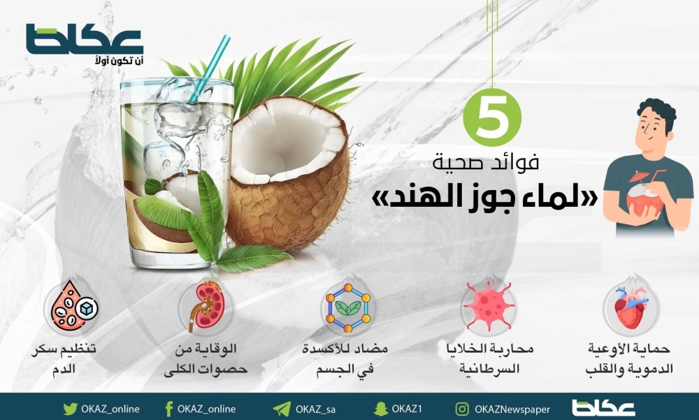 يعد ماء جوز الهند العذب المذاق من السوائل اللذيذة التي يحتاجها الجسم ويُكثر الناس منها في فصل الصيف، لما له من فوائد ذهبية لصحة جسم الإنسان، بحسب «البيان»، مع الأخذ في الاعتبار عدم الإفراط في تناوله، لأن ذلك يسبب مشاكل صحية عديدة، وبحسب موقع dw، له أهمية كبيرة للقلب والكلى وخفض السكر، وهذه أبرز الفوائد: