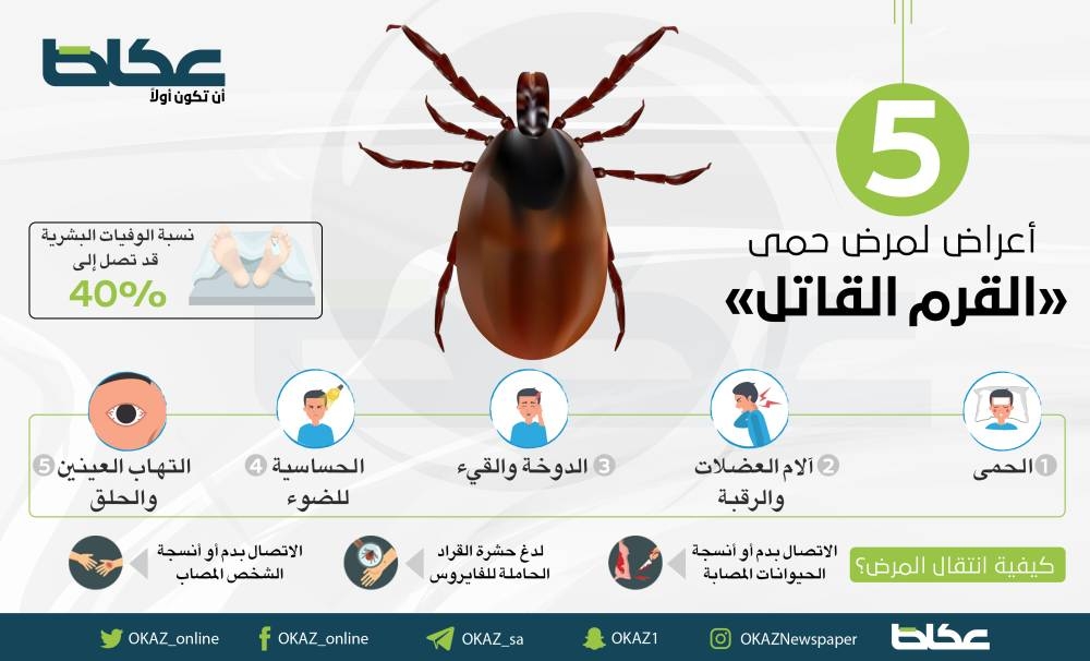 يحذّر الأطباء من مرض حمى القرم القاتل، الذي يعتبر أحد أكثر الأمراض فتكاً في العالم، ويسببه فايروس ينتقل عن طريق القراد.