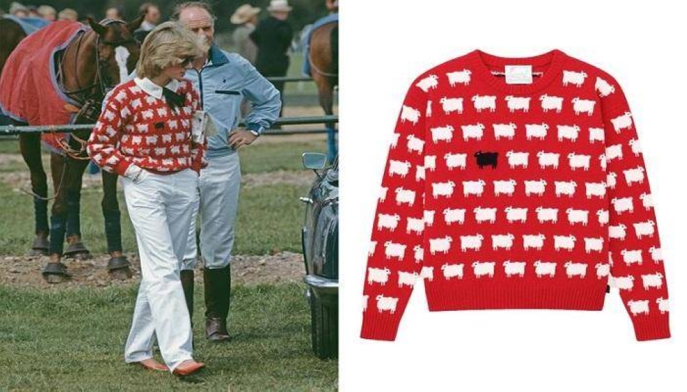 وتتميز السترة بتصميمها الفريد، إذ تضم خروفاً أسود بين صفوف من الخراف البيضاء على خلفية حمراء، واشتهرت الأميرة الراحلة بارتدائها في مباراة بولو في يونيو 1981، بعد وقت قصير من خطبتها على الأمير تشارلز آنذاك.