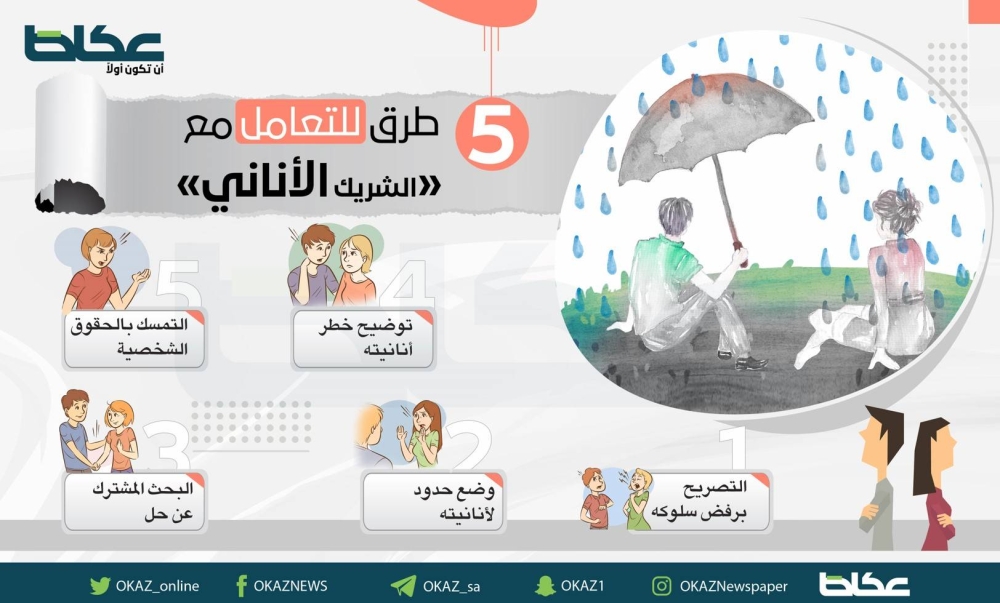 تتطلب العلاقات الزوجية وعياً عميقاً، وهناك حالات قد تفاجئ أحد الزوجين كأن يكون شريكه أنانياً، وهذا يتطلب التعامل مع الشريك الأناني وفق مجموعة من الأسس التي تساعد على استمرار العلاقة الزوجية.
