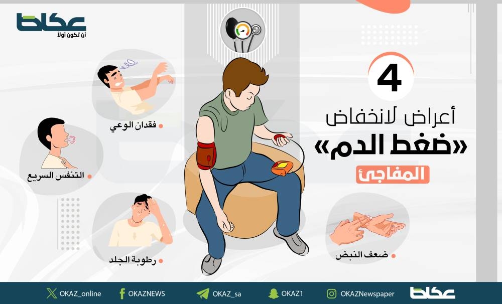 وتوجد 4 أعراض لانخفاض ضغط الدم المفاجئ هي: