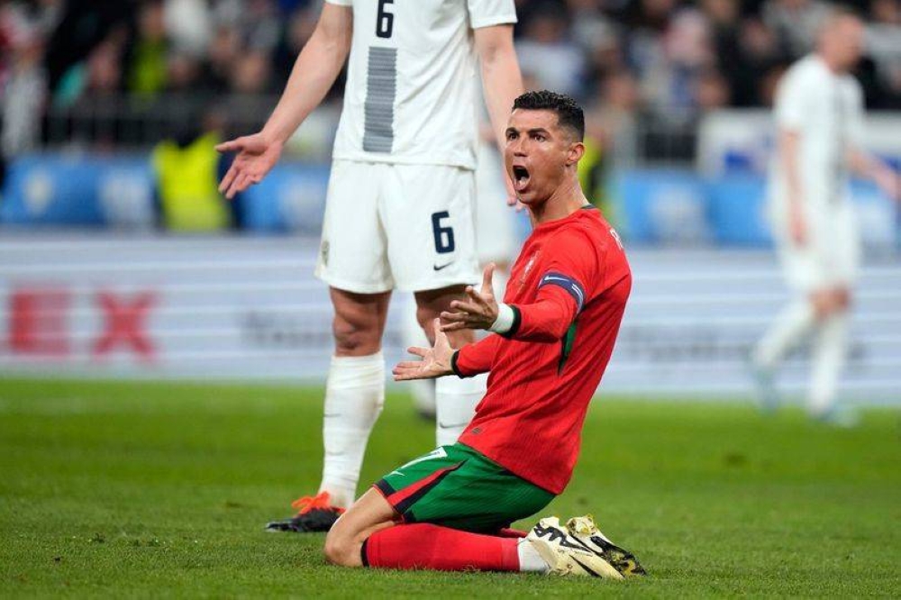 رونالدو خلال مباراة منتخبه البرتغال ضد سلوفينيا المستضيف.
