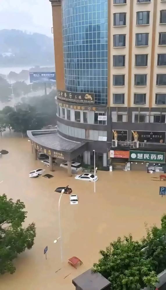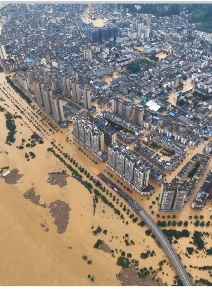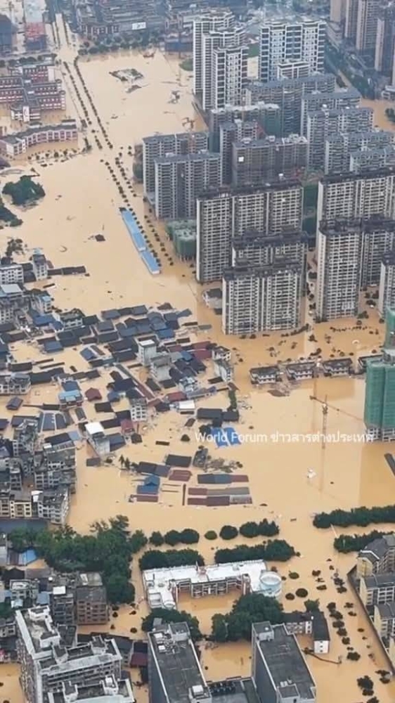 Widespread areas in southern and central China experienced catastrophic flooding today (Thursday), described as the worst in decades, due to heavy rains that lasted for days, leading to rising river levels, infrastructure destruction, and the displacement of thousands.