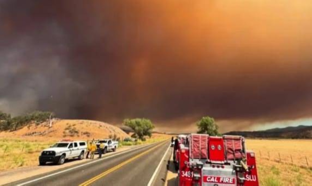 The fire has led to the closure of part of State Route 166 and caused thick smoke columns to spread to neighboring counties, affecting air quality.