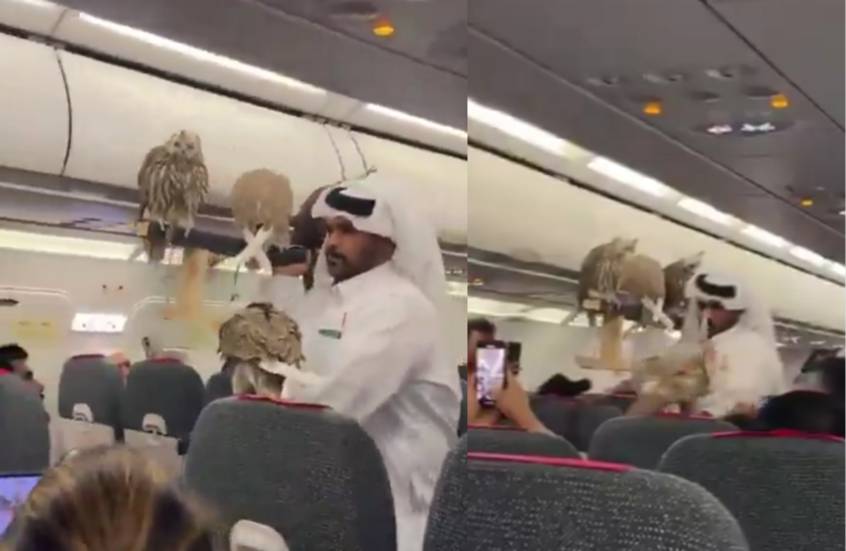 تداول مستخدمو مواقع التواصل الاجتماعي مقطع فيديو يظهر مشهداً غير معتاد على متن إحدى الطائرات، إذ قام مواطن خليجي باصطحاب مجموعة من صقوره معه خلال الرحلة.