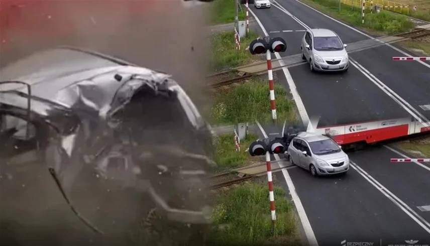 According to what was published by The Sun newspaper, the incident occurred when a silver Opel car breached the barrier at a railway crossing, despite the warning arms being lowered and the visual and audible signals being activated.