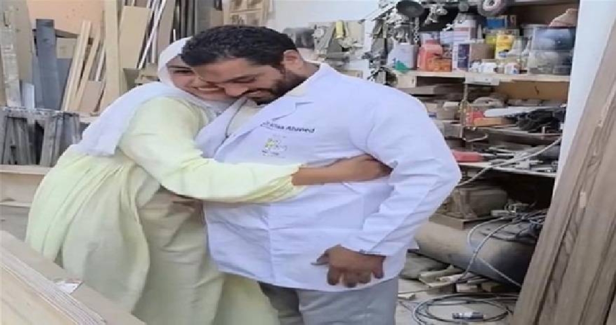 In a heartwarming scene that captivated viewers, Egyptian student Alaa Ahmed chose to celebrate her first day at veterinary school in a unique way, by wearing her white coat and heading directly to her father's modest workshop in Saft El-Laban, Giza, to surprise him with an unforgettable moment of pride.