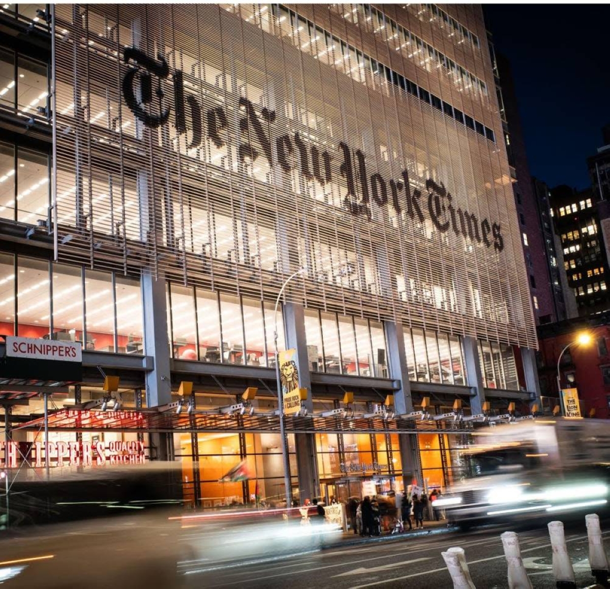 وجهت السلطات الأمريكية اتهامات جنائية لثلاث نساء شاركن في تخريب مبنى صحيفة نيويورك تايمز الشهير وسط مدينة مانهاتن، باستخدام طلاء أحمر وكتابات معادية على النوافذ والواجهات.