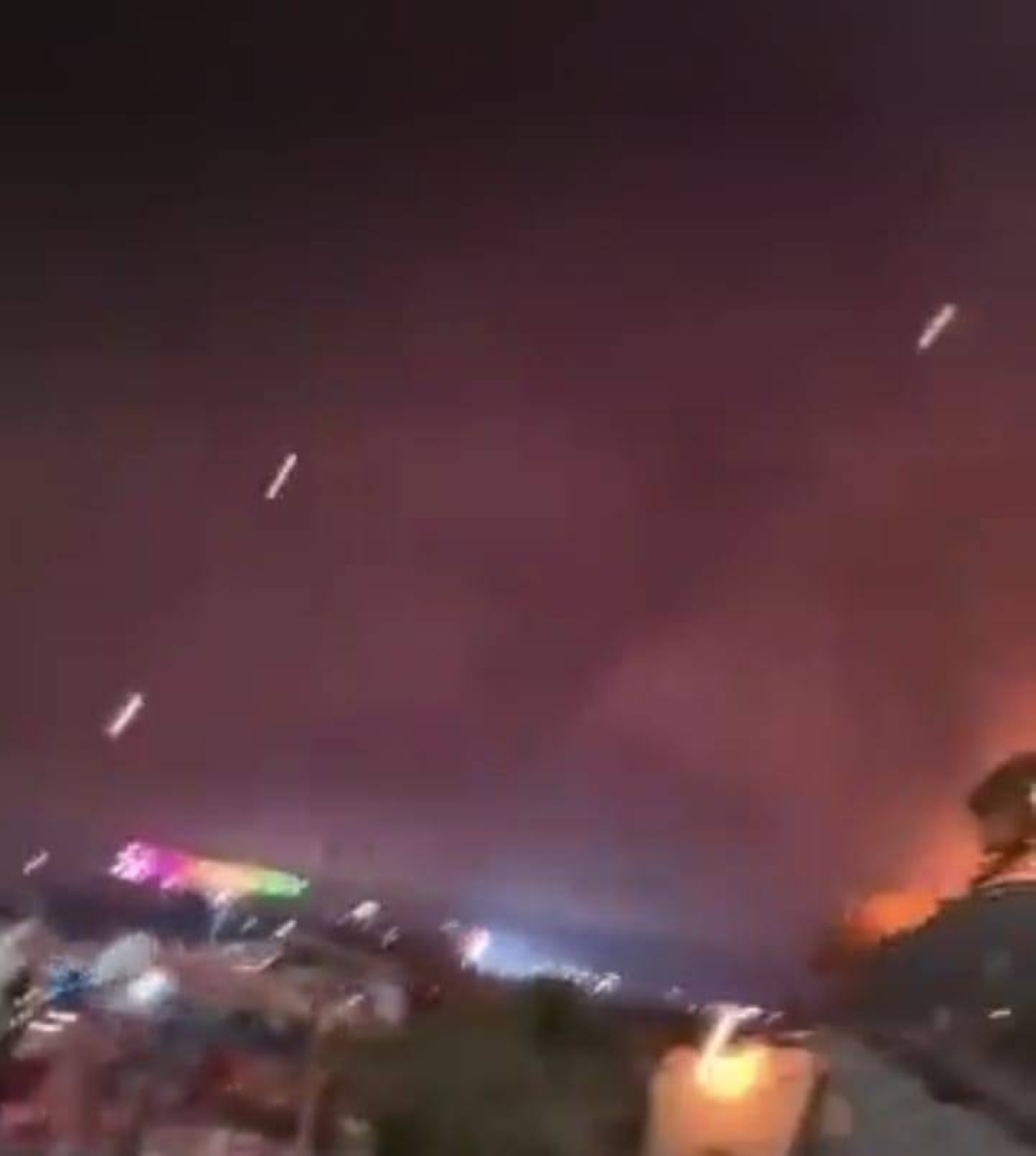 Videos of the incident spread widely across social media, showing the sky transforming into a canvas of falling flames like meteorites, before firefighting teams quickly intervened to extinguish the fires without reporting any injuries.