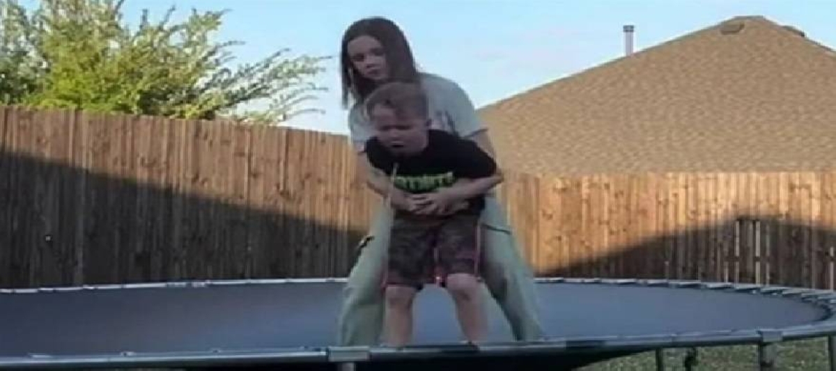 The innocent moments of playing on the trampoline in Lavon, Texas, turned into a terrifying scene when 7-year-old Logan suddenly choked on a piece of candy while jumping, stopping his movement and clutching his chest in panic.