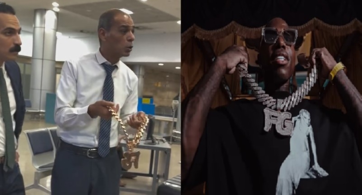 Social media platforms circulated a video posted by the artist showing two airport employees conducting customs inspection on him and asking about a 2-kilogram gold necklace in his possession, inquiring if he had proof of ownership, and requesting a picture of him wearing it, with him confirming that it is part of his personal belongings and an aspect of his artistic appearance.