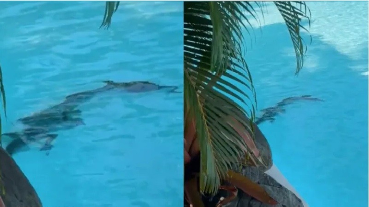 In a strange incident captured by cameras, guests at a luxury hotel in northeastern Australia were surprised to find a small crocodile in the hotel pool, just meters away from patrons relaxing under the sun!