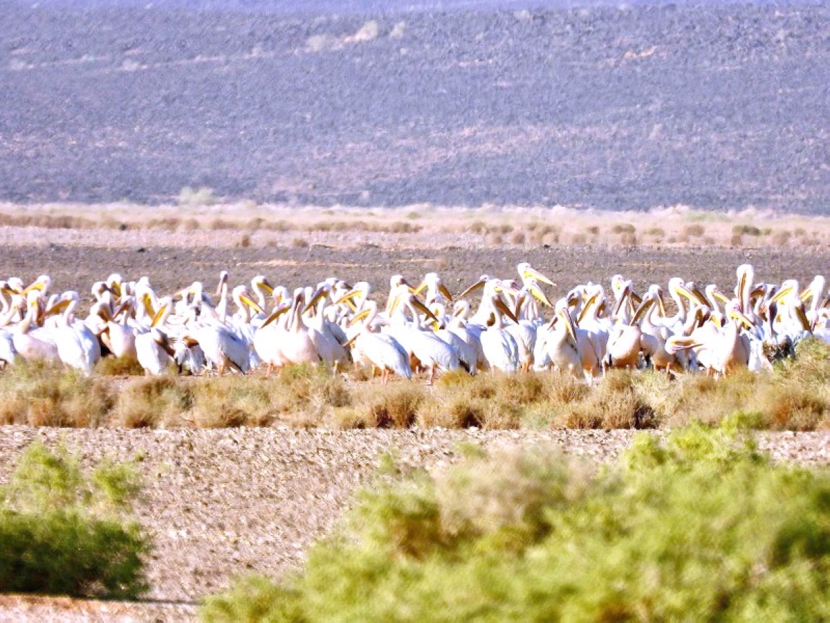The Great White Pelican is one of the largest flying birds in the Kingdom, ranking fourth among the heaviest birds in the world, with a wingspan ranging from 226 to 360 centimeters, making it one of the most prominent sights of migration in the skies over the Saudi desert.