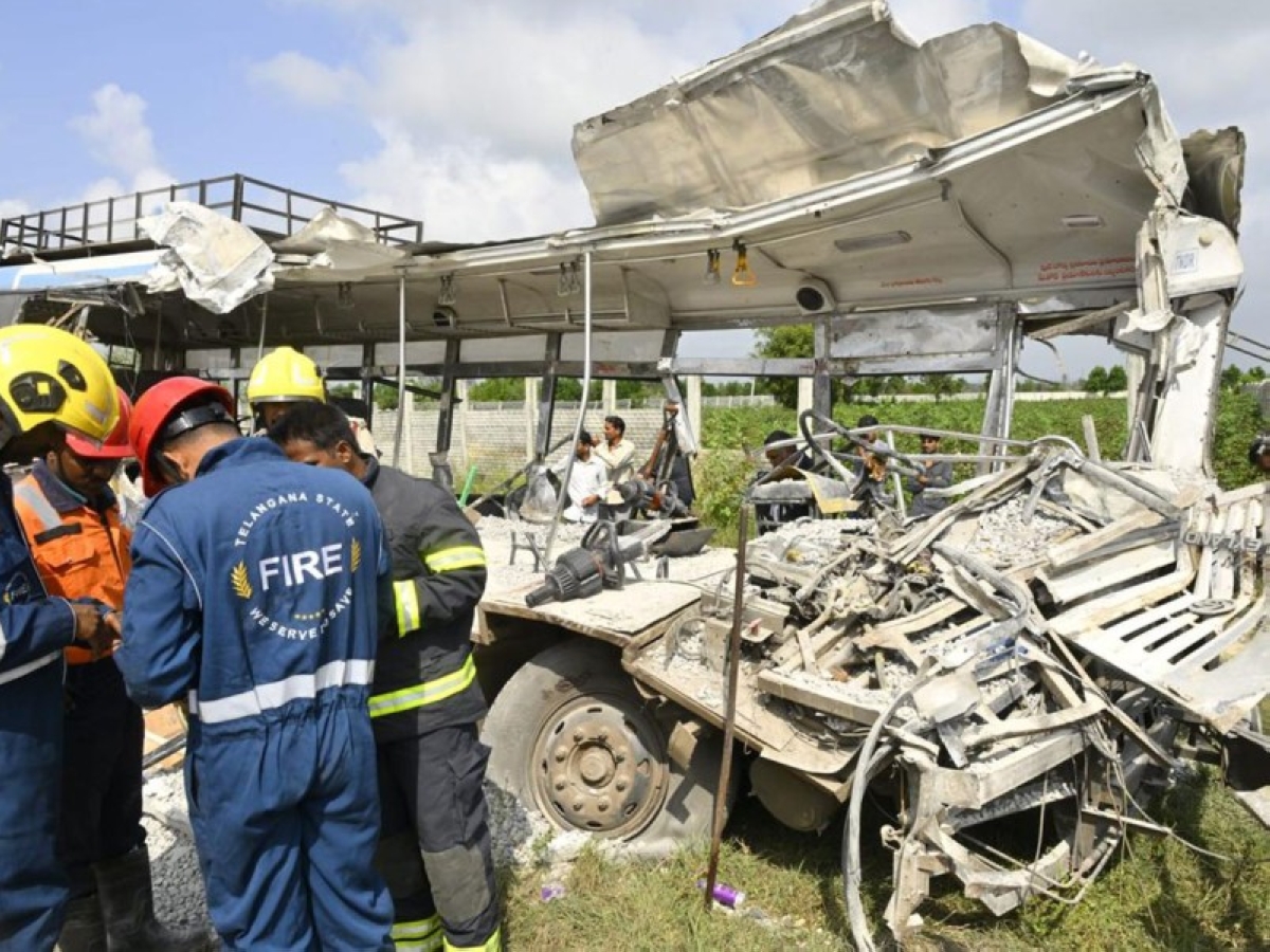 وقالت الشرطة الهندية، إن الحادث وقع بينما كانت الحافلة التي تقل نحو 70 راكبا، متجهة إلى حيدر آباد، عاصمة الولاية.