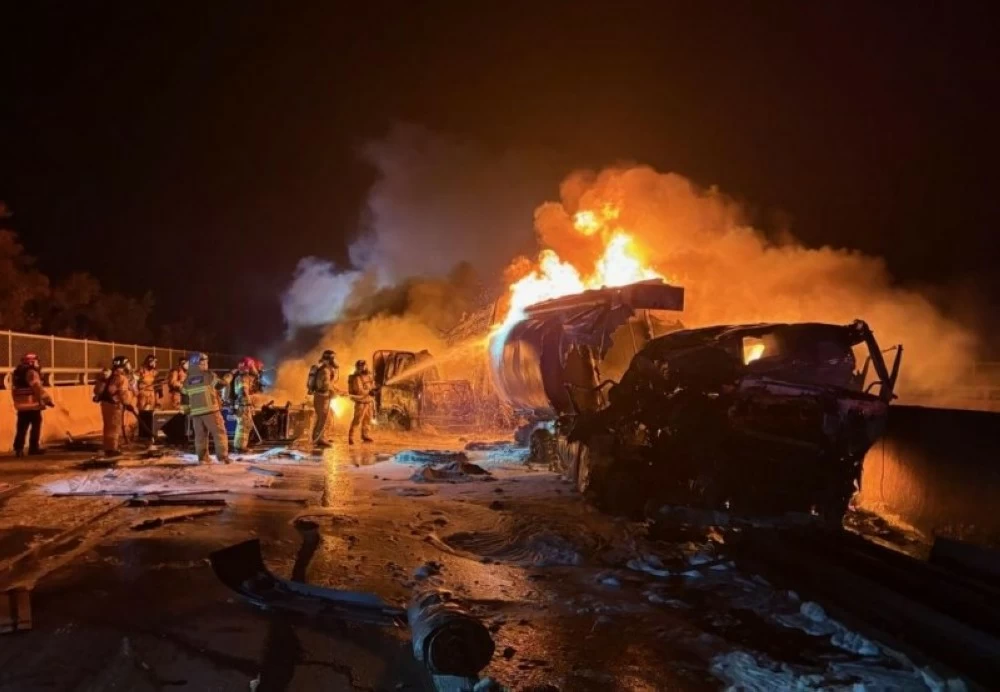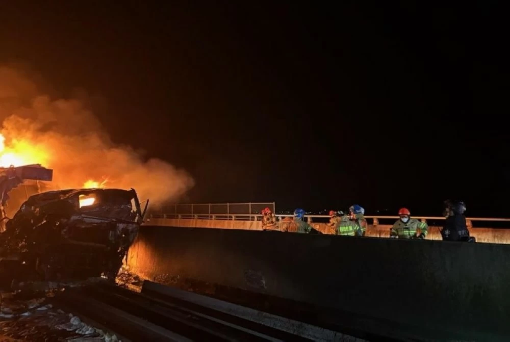 The collision occurred on a highway in North Gyeongsang Province at 3:12 AM local time (18:12 GMT on Sunday), causing several vehicles to catch fire. The flames were extinguished in approximately two and a half hours.