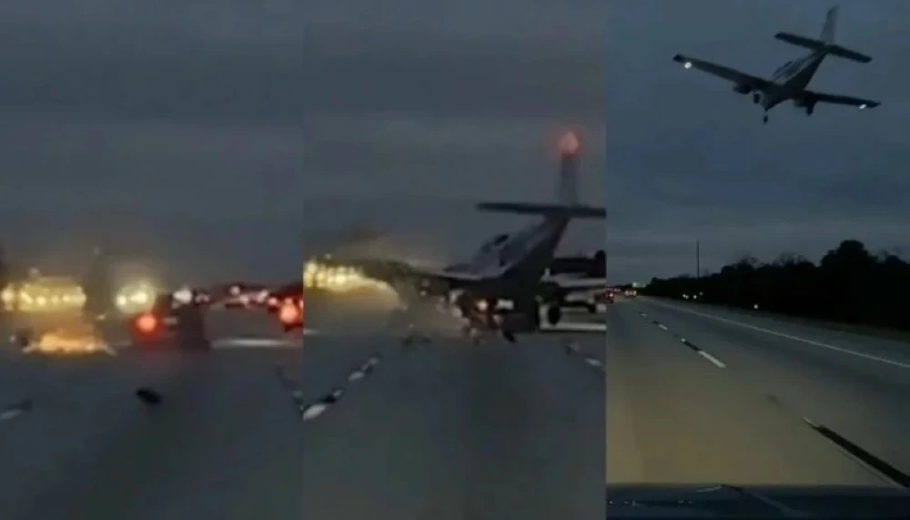 A rare and unexpected incident occurred on a highway in the state of Florida, USA, when a small plane collided with the rear of a car while attempting to make an emergency landing on a busy road last Monday evening. The incident shocked passersby and captured the attention of local and international media.